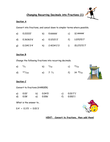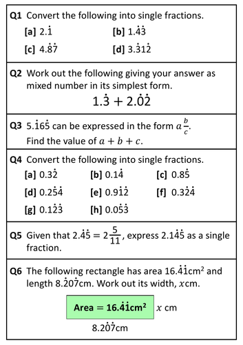 Converting Between Recurring Decimals And Fractions Resources Tes